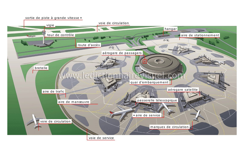 Aire où sont stationnés les avions entre les vols pour entretien ou révision.