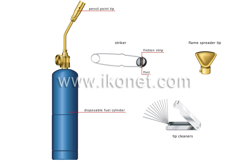 Detachable end in which the gas is burned, and whose shape produces a slender flame with a fine tip.