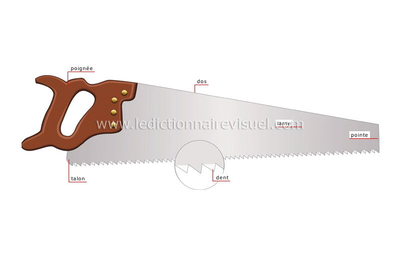Scie manuelle très courante, adaptée aux coupes droites dans les planches ou les panneaux de bois.