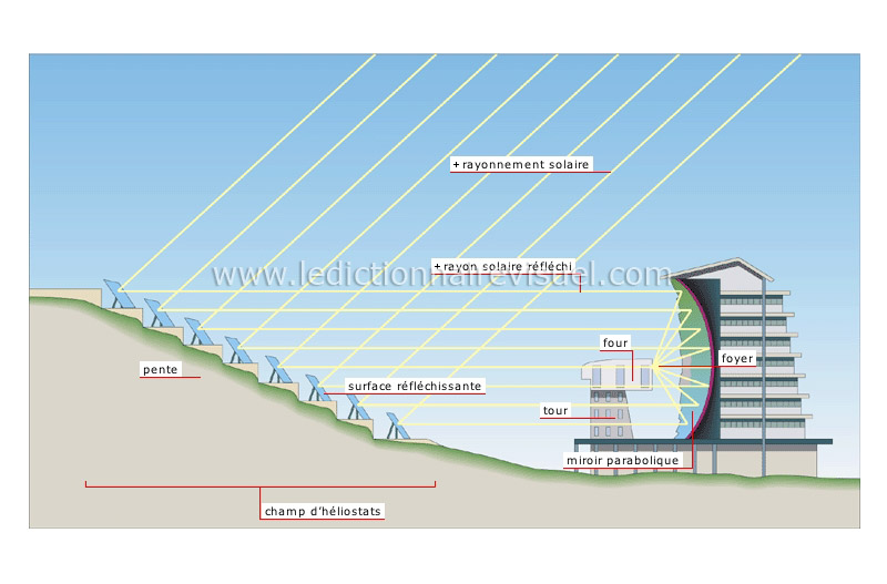 Miroir dont la forme incurvée permet de concentrer les rayons du soleil en un seul point du four (le foyer).