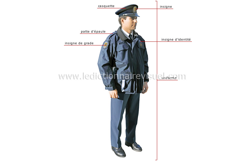 Vêtement de coupe et de couleur déterminées que portent les agents de police en fonction.