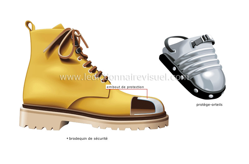 Chaussures ou accessoires utilisés pour protéger les pieds des chutes de matériaux, des sources de chaleur intense, des outils coupants, etc.